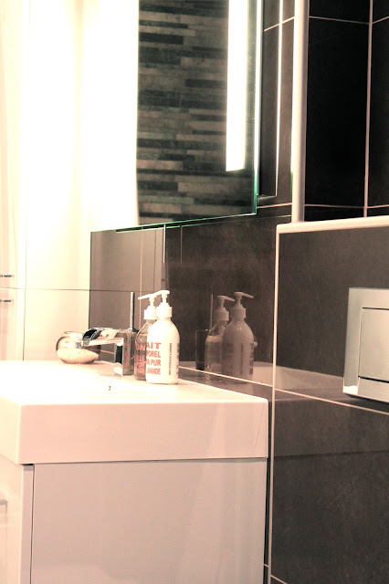 Som utlovat delar jag här med mig av små detaljer från vårt nyrenoverade badrum. I våra val har vi medvetet tänkt utanför boxen & arbetat med de färger som inte tillhör det vanliga. Olika nyanser i brunt & guld har fått gifta sig med vitt i både fondvägg & inredning. Trots att vi lagt stort fokus på design & hökvalitativa materialval har vi ändå tagit hänsyn till det funktionella, med bra förvaring i både sidoskåp & under vask får alla våra badrumsprodukter bra med utrymme. Vi är väldigt stolta & nöjda med den balans & värme som skapats i samklang med exklusivitet & personlighet. De stora kakelplattorna i brunt & vitt kommer från Kerma kakel medan det guldshimrande golvet & stavmosaiken i duschen är inköpt på Höganäs. Inredningen såsom spegel med belysning, vask, blandare, sidoskåp, inbyggd toalett mm är alla inköpta på Lindströms i Lomma, servicen hos alla tre inköpsställena har varit mycket bra vilket underlättar inköpen avsevärt i den stora badrumsdjungeln.